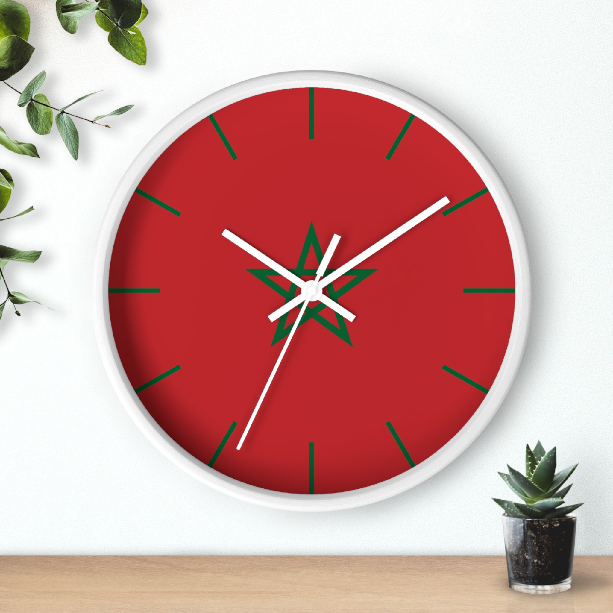This 10″ wall clock brings bold, cultural energy to any indoor wall. The deep red face and layered green pentagram create a striking focal point that reads like a modern emblem. Lightweight wood framing and a plexiglass face keep the look clean and contemporary, while the silent mechanism ensures gentle, unobtrusive timekeeping. Hang it in a living room, entryway, or creative studio to add a graphic, statement-making touch that still feels warm and crafted.