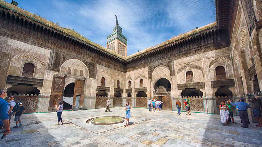 Explore the vibrant medina of Fes el-Bali, a UNESCO World Heritage Site and one of the world’s largest car-free zones. Your expert guide will lead you through labyrinthine streets filled with colorful souks, ancient madrasas, and artisan workshops. Visit the Royal Palace gates, the iconic Chouara Tanneries, and the Bou Inania Madrasa, a masterpiece of Moroccan architecture.